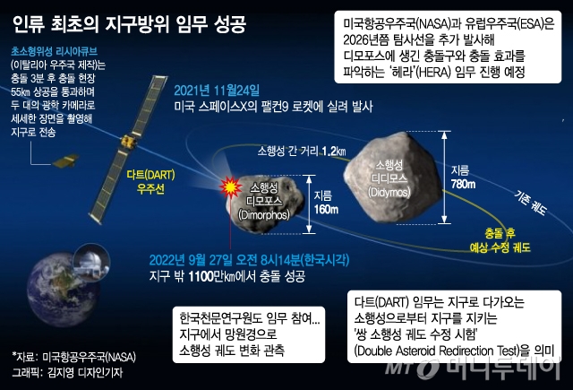 아마겟돈 처럼 소행성에 우주선 쾅 천체 궤도 바꾼 인류 첫 실험 머니투데이